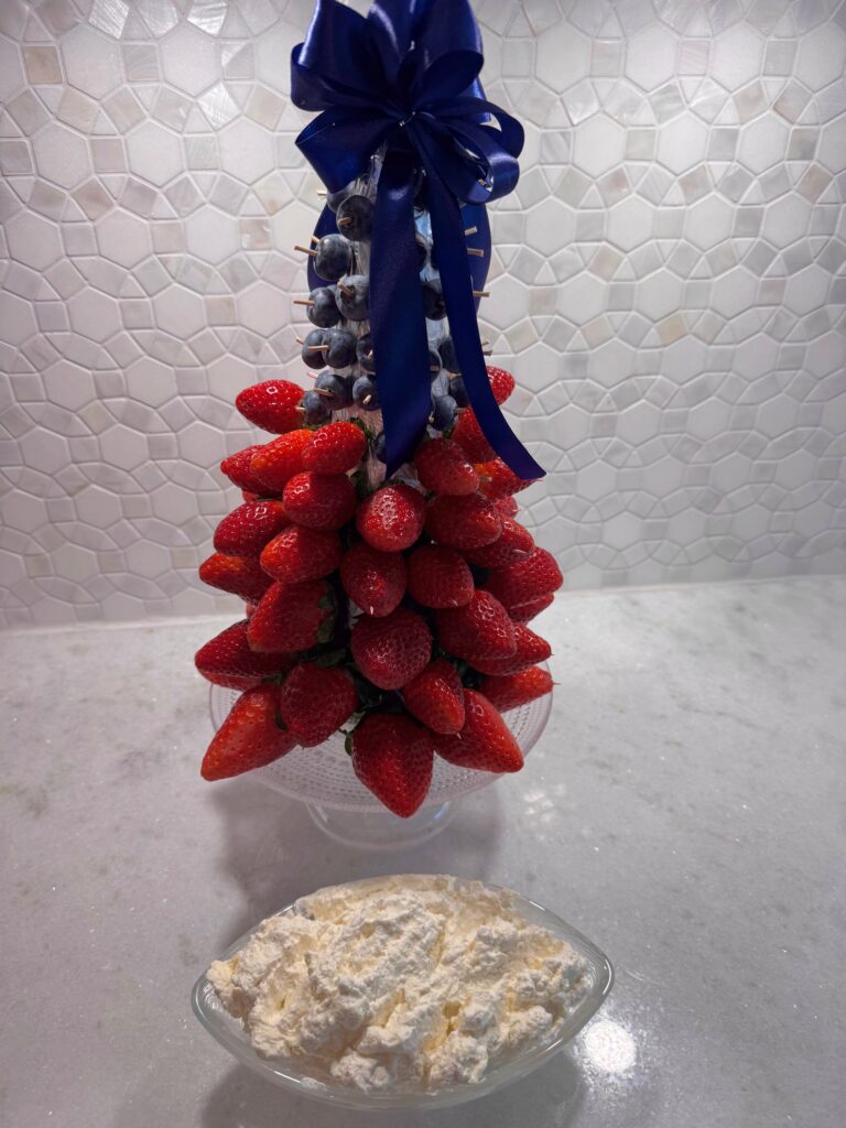 Gently fold the whipped cream mixture in with the cream cheese with a spatula. Refrigerate and serve with the fruit of your choice